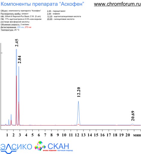 - ВЭЖХ анализ. ВЭЖХ определение компонентов препарата "Аскофен" (парацетамол, кофеин, ацетилсалициловая к-та, салициловая к-та). ВЭЖХ колонка: 4.6x250 Reprosil-Pur Basic C18. Жидкостной хроматограф Gilson (Гилсон) с УФ детектором. www.chromforum.ru