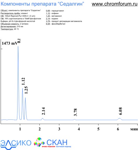 - ВЭЖХ анализ. ВЭЖХ определение компонентов пр. "Седалгин" (метамизол, парацетамол, кофеин, кодеин, фенобарбитал). ВЭЖХ колонка: 3x100 Reprosil-Pur ODS-3. Жидкостной хроматограф Gilson (Гилсон) с УФ детектором. www.chromforum.ru
