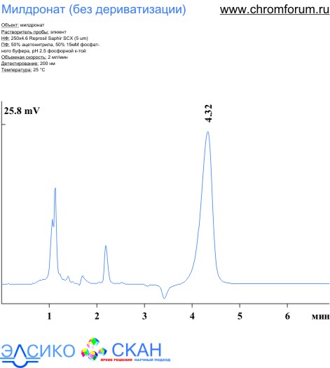 2. Милдронат без дериватизации на колонке 4.6x250 Reprosil Saphir SCX