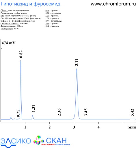 ВЭЖХ определение гипотиазид и фуросемид на колонке Reprosil-Pur C18-AQ. Жидкостной хроматограф Gilson (Гилсон) с УФ детектором. www.chromforum.ru