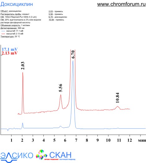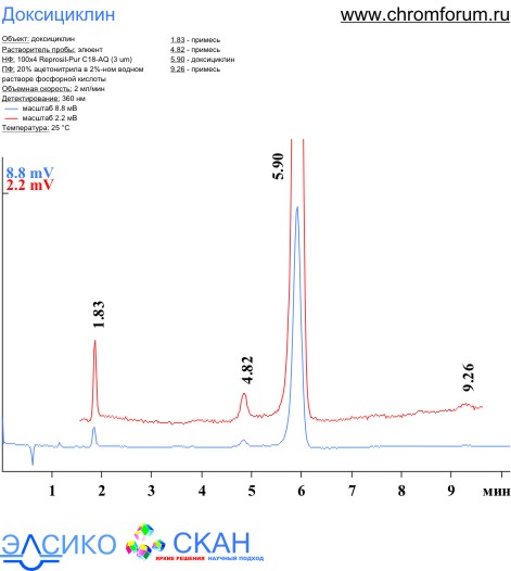 1. Доксициклин на колонке 3x100 Reprosil-Pur ODS-3