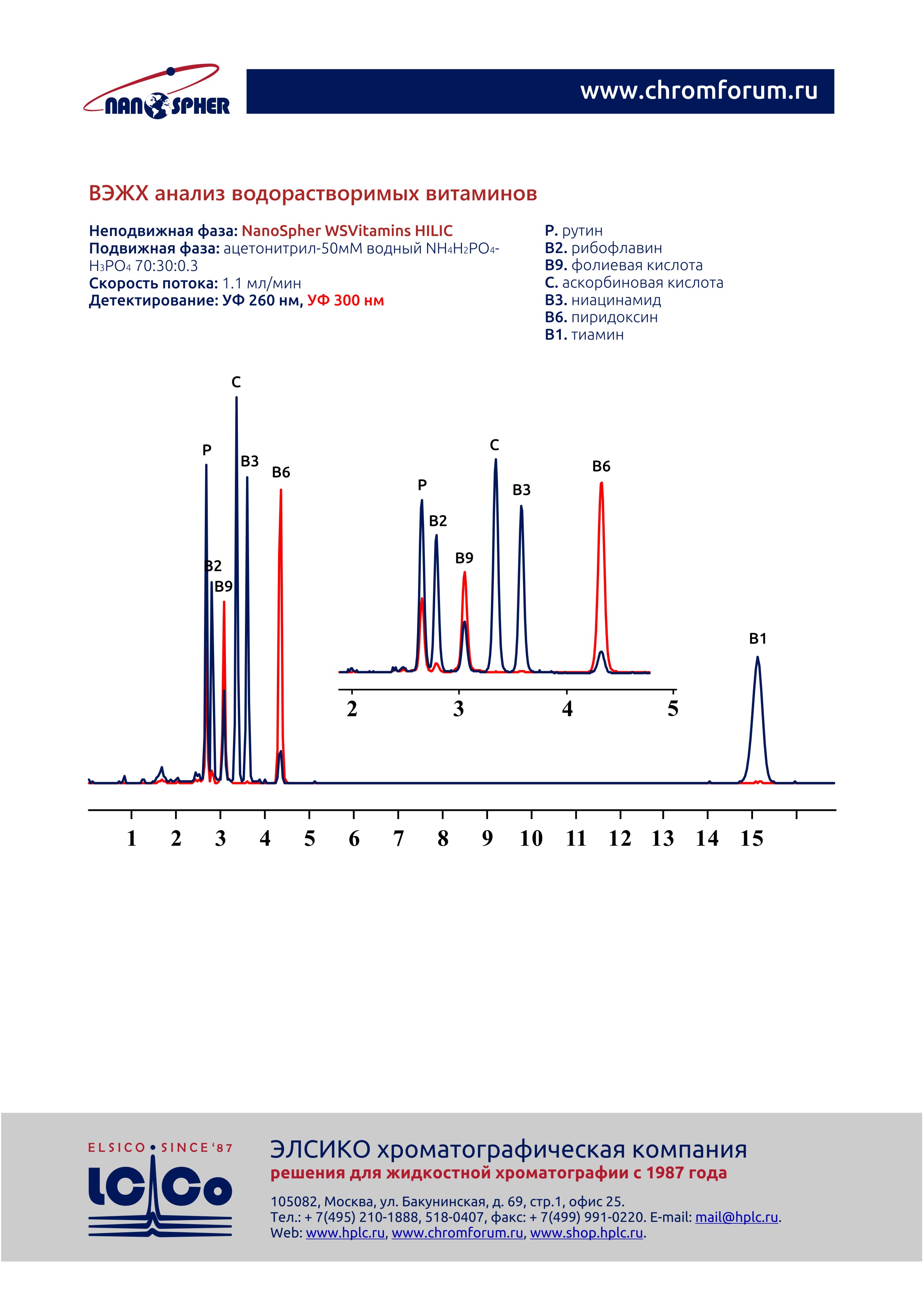Неподвижная фаза: NanoSpher WSVitamins HILIC
