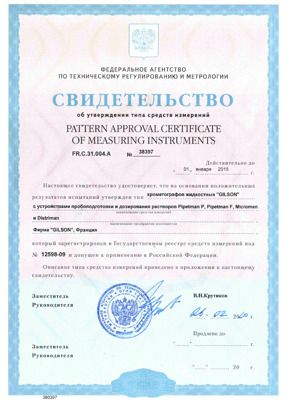 Жидкостные хроматографы Gilson (США) внесены в Госреестр средств измерений РФ (ГРСИ) и имеют утвержденную методику поверки.