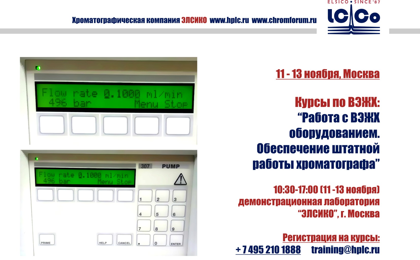 • Список форумов ‹ Форум аналитиков и хроматографистов ‹ Обучающие курсы по высокоэффективной жидкостной хроматографии (ВЭЖХ) ‹ График курсов на ближайшие месяцы