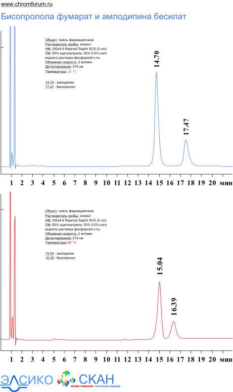 1. Бисопролол и амлодипин на колонке 4x100 Reprosil-Pur C18-AQ и 250х4.6 Reprosil-Pur Basic C18