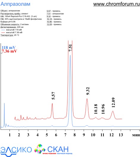 1. Алпразолам на колонке 4x100 Reprosil-Pur C18-AQ