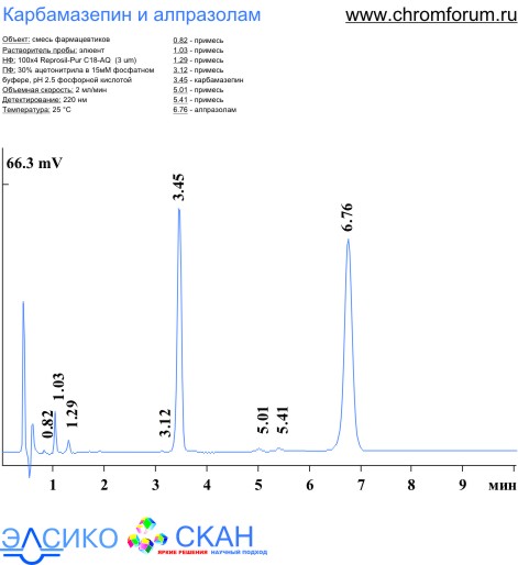 2. Карбамазепин и алпразолам на колонке 4x100 Reprosil C18-AQ