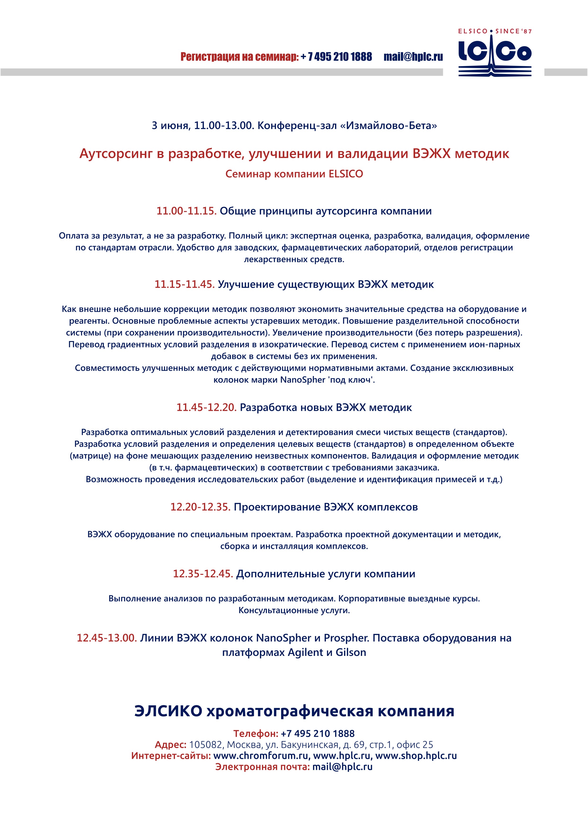 Программа семинара "Аутсорсинг в разработке, улучшении и валидации ВЭЖХ методик"