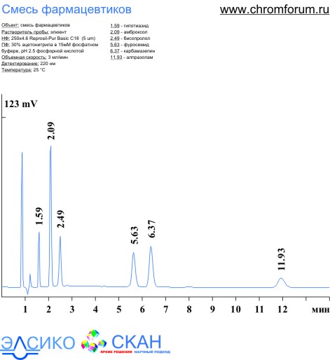 ВЭЖХ разделение фармацевтиков на колонке Reprosil-Pur Basic C18. Жидкостной хроматограф Gilson (Гилсон) с УФ детектором. www.chromforum.ru